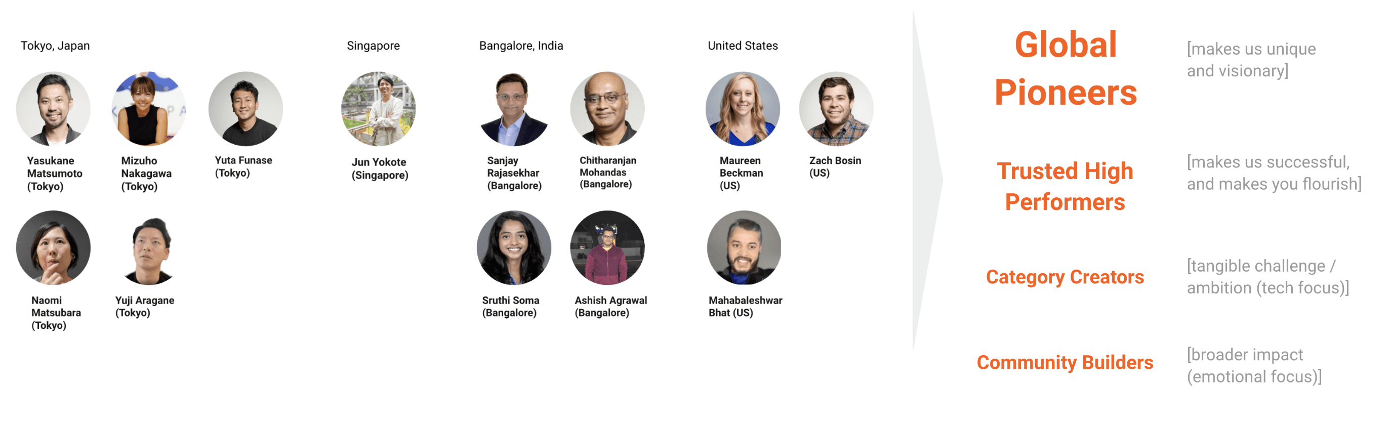 To understand Josys' truly unique descriptors, we conducted interviews with 15 employees, including leadership leveraging our teams own culturally rich and diverse backgrounds. We systematically debated and challenged each other’s conceptions of what makes working at Josys attractive and the profile of future team members they seek—gathering perspectives from staff of various nationalities, positions and backgrounds across Japan, the US, Singapore, and India.