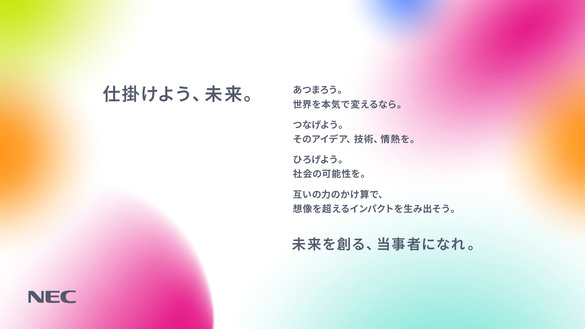 These tools—unified by vibrant colours that evoke diverse "co-creation" with partners—bring new cohesion to NEC's ambitious new business development initiatives whilst adding fresh energy that positively challenges conventional expectations of NEC.