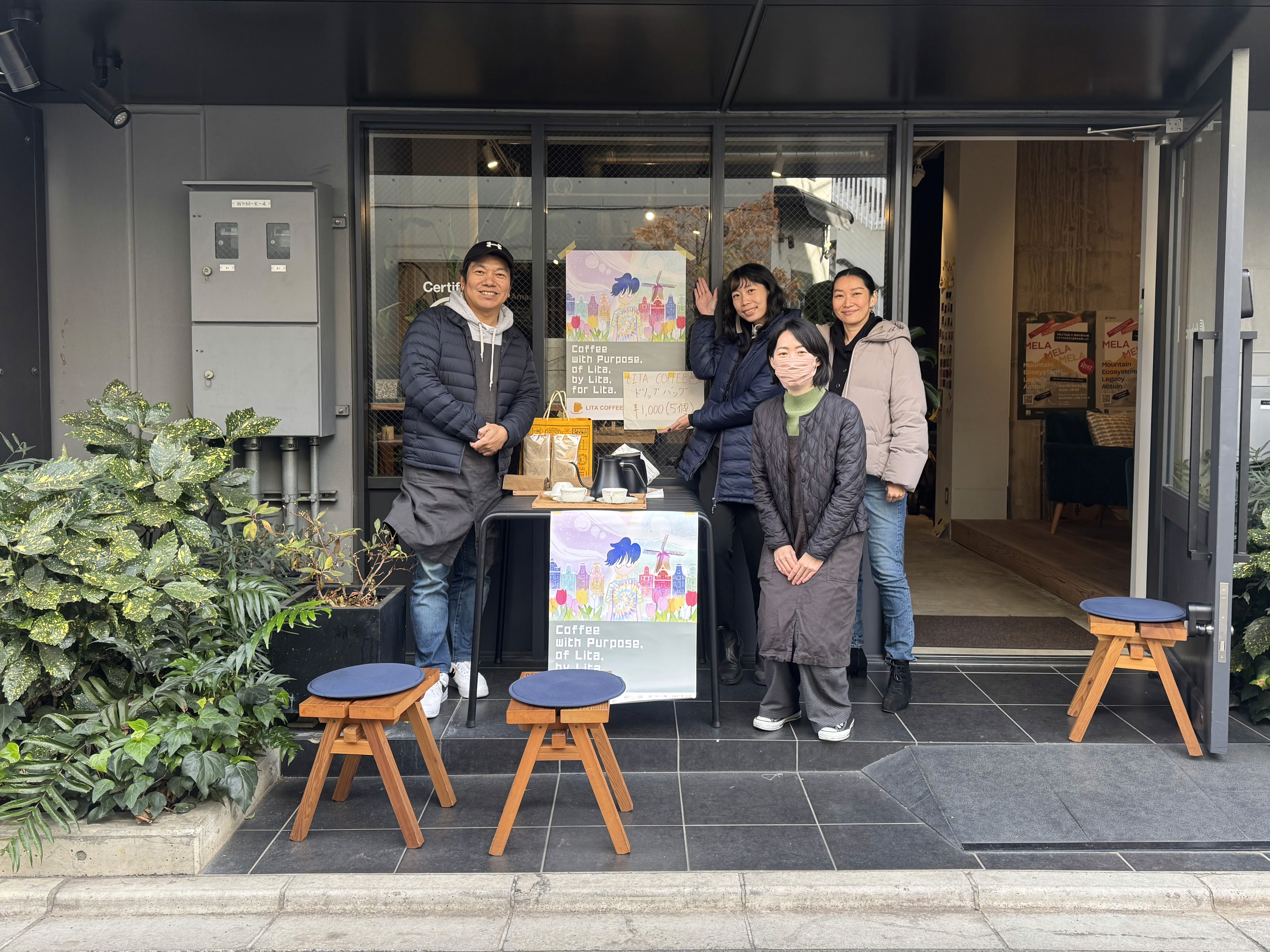 「LITA&COFFEE」は福岡を拠点とするコーヒーロースタリーで、障がいのあるメンバーが豆の手選別から焙煎、発送まで、すべての工程に携わっています。「利他」の精神に導かれ、毎月最終水曜日(スケジュールは変更の可能性あり)にFabricオフィス前でポップアップスタンドを開いています。